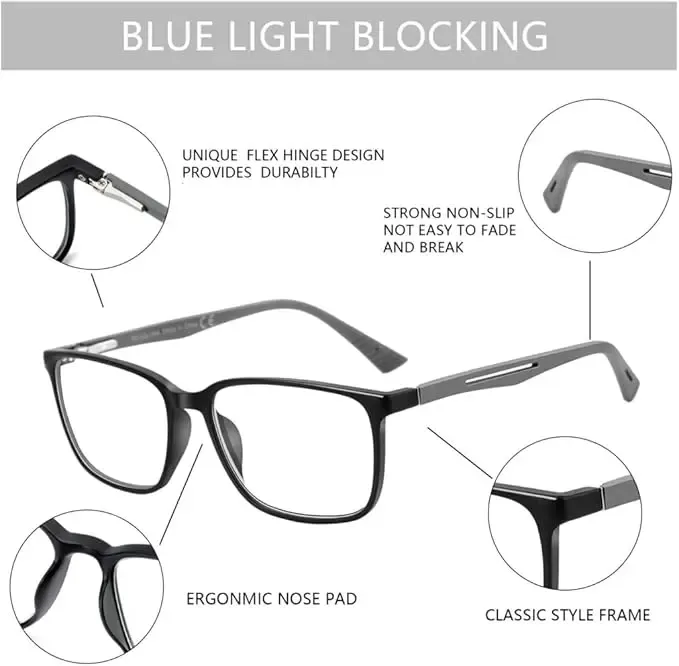- 💪 Ultra-Light TR90 Frame: Made of high-quality TR90 material, more than half the weight of regular glasses—comfortable for all-day wear, no pressure on your nose or ears, even during long gaming sessions or office work 😌
