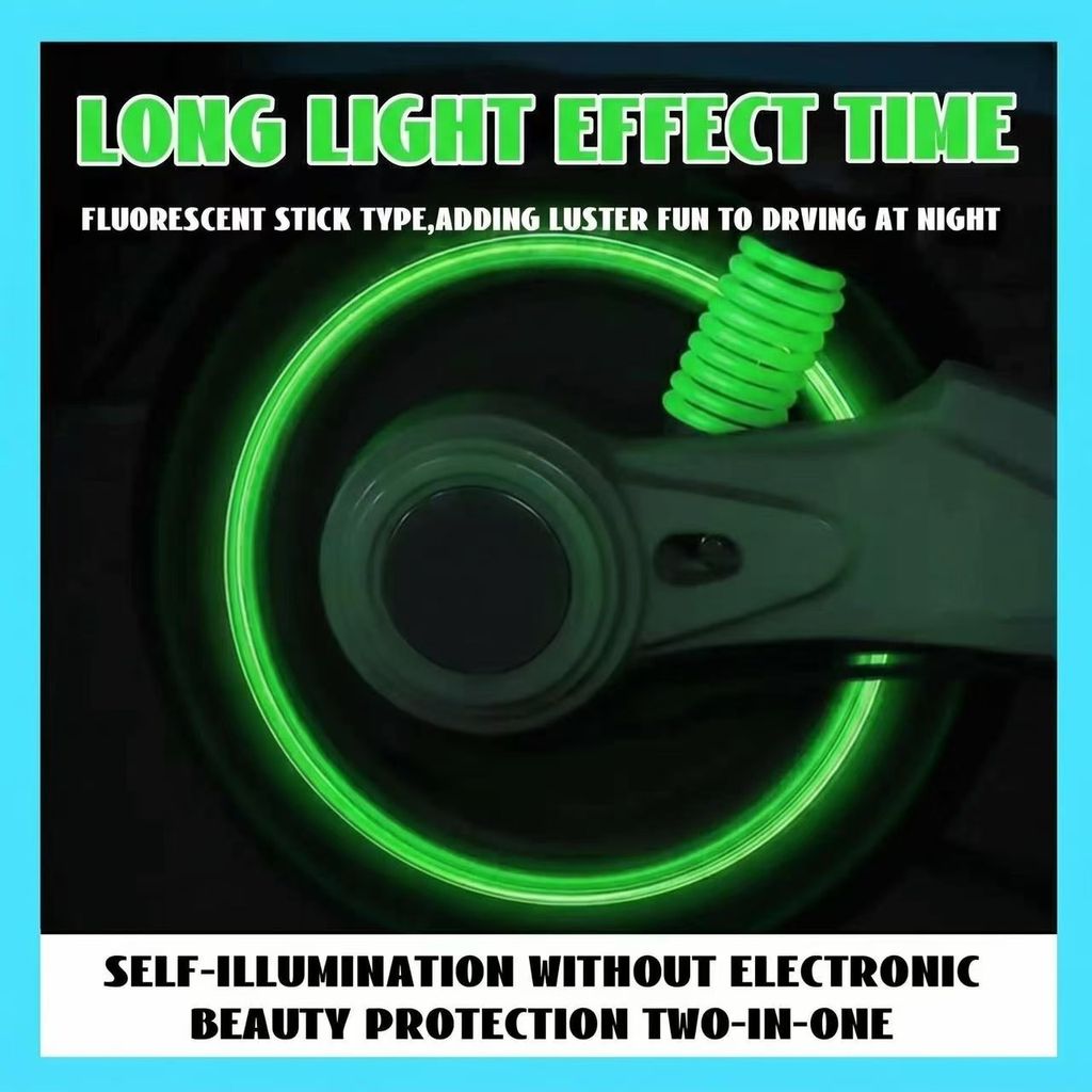 • Fluorescent Glow-in-the-Dark Design: Absorbs light during the day, glows bright blue at night – adds style and visibility to your wheels 🔵