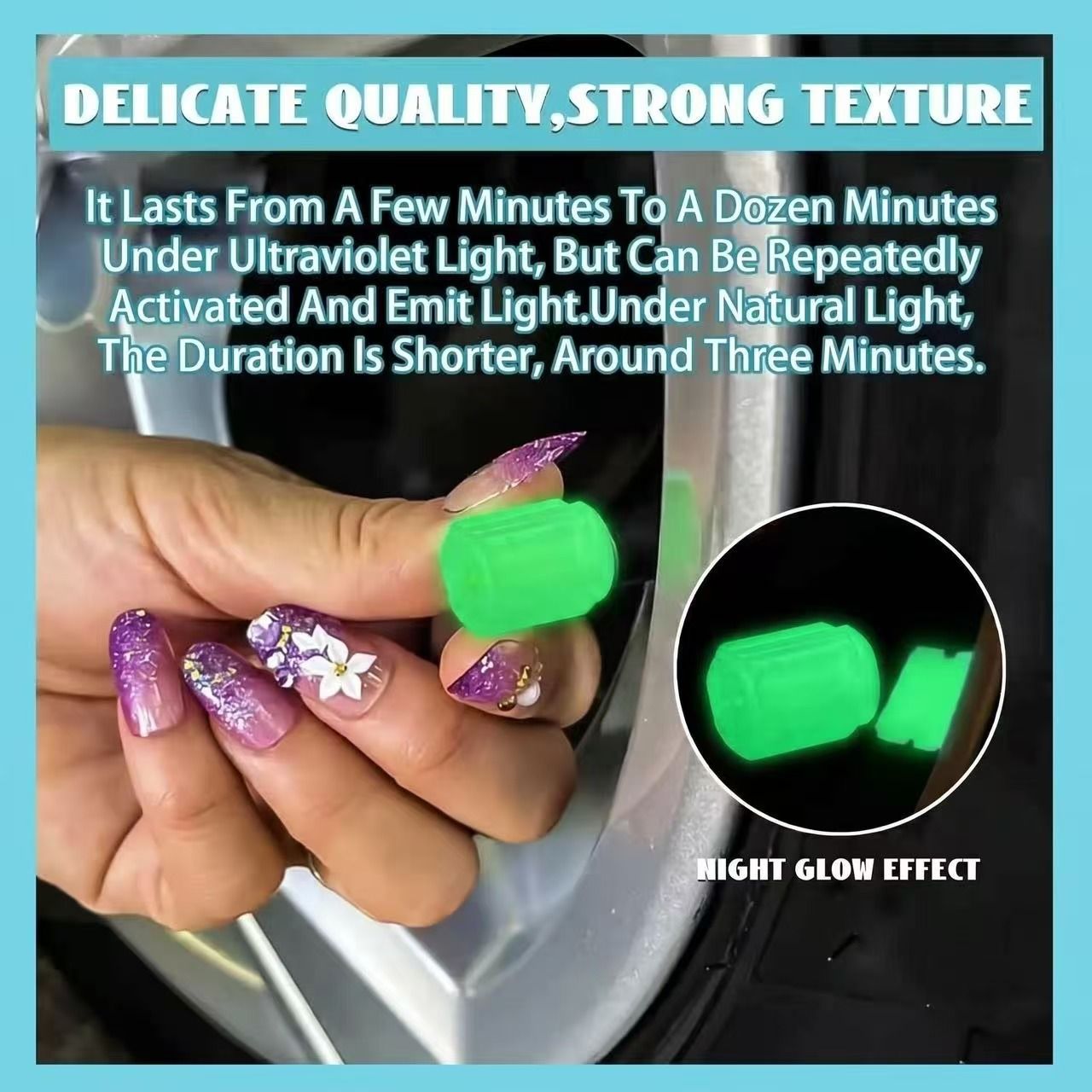 • UV Light Activation: Glows for 5–12 minutes under strong light (sun/UV), 3 minutes under natural light – can be recharged repeatedly 🔆