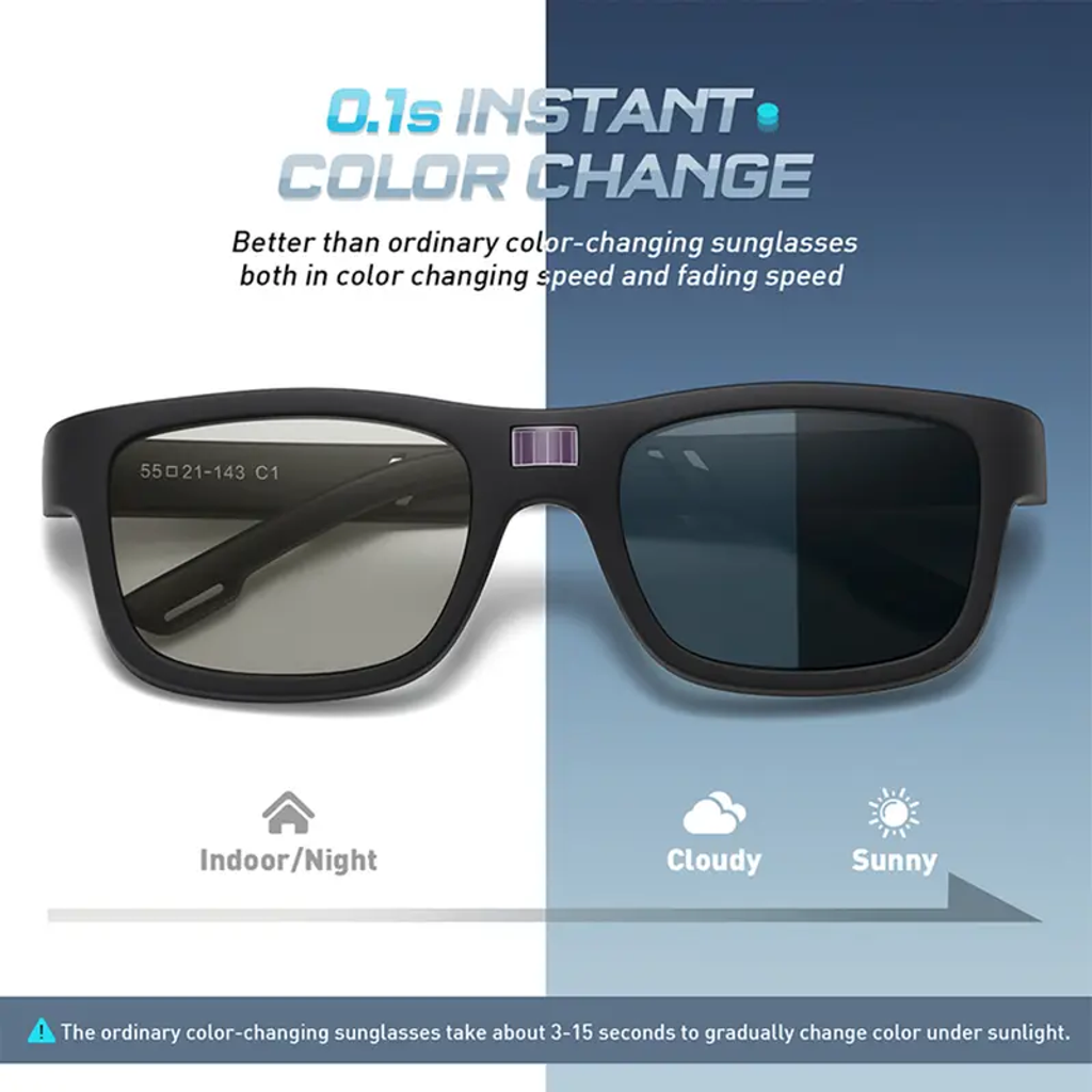 | Key Features | 0.1s Color Change, Polarized UV Protection, Lightweight TR Frame, Unisex Design |