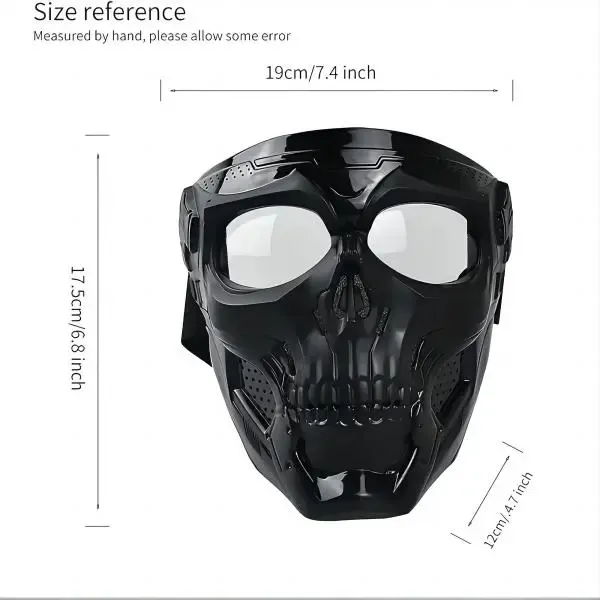 💀 Skull Protective Mask – Safety & Cool Style for Kenyan Outdoor Lovers 🇰🇪Perfect Halloween skull gift and professional full-face protection mask!Made of tough TPU body and anti-UV PC lens, shockproof, wear-resistant and anti-glare.Fitted with soft sponge, breathable holes & adjustable elastic belt, suitable for motorcycle, cycling, hunting, climbing and all outdoor sports in Kenya.Grab now at 50% discount + Pay after delivery with Cash on Delivery, 100% safe shopping❗