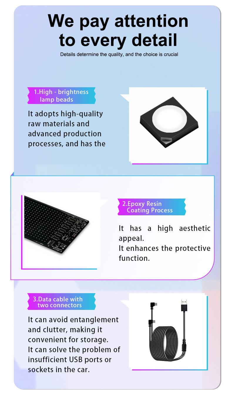 ✅ Programmable Design – Customize light effects freely, unique display for your vehicle